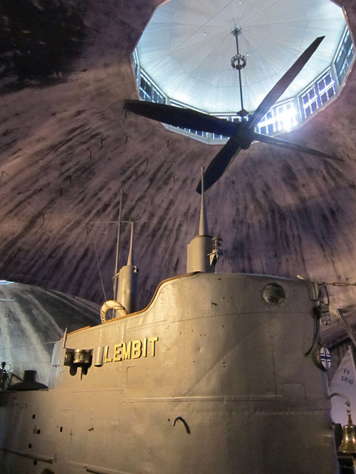Museon kiintotähtenä toimii huomattavasti Suomen Vesikkoa kookkaampi sukellusvene Lembit. Brittivalmisteinen Lembit on vuodelta -36, mutta se on entisöity huolellisesti alkuperäisasuunsa. Lembit on installoitu näyttävästi museon kolmikerroksista arkkitehtuuria mukaillen vesirajaan ja vähän sen alle. Hallissa nimittäin liikutaan veden alla, pinnalla ja ilmassa. Tila on otettu haltuun erittäin hyvällä hyötysuhteella, mutta silti ehdottoman elämyksellisesti.